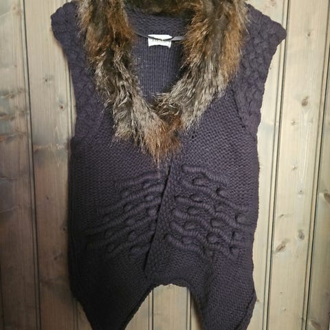 Et ekstra lag for kalde dager. Grov, svart strikk med fuskepelskant.