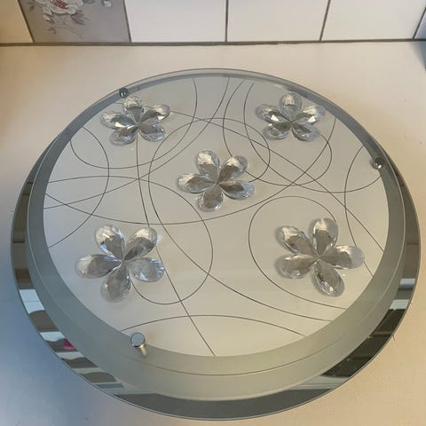 Svært pent brukt taklampe. Diameter 25 cm, høyde fra taket 25 cm. Moderne lykt-look som passer inn i de fleste oppholdsrom.
