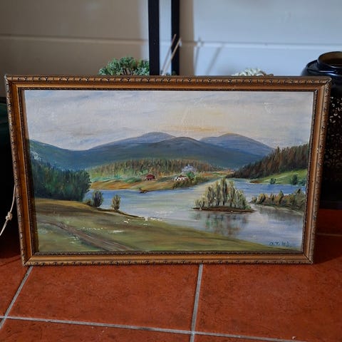 Landskapmaleri i samme stil som Strandamalerne gjorde. Maleren heter H. Kritt