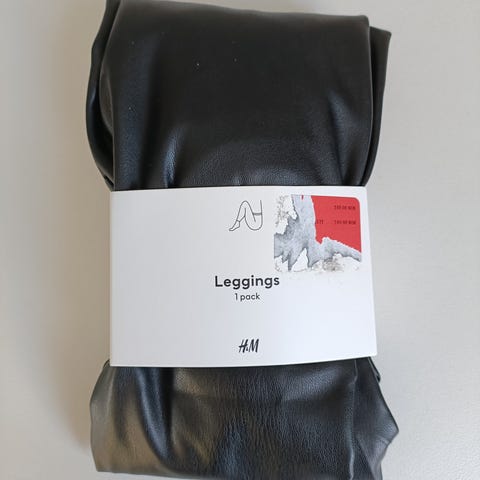 Nesten nye og ubrukte i stretchy kjøpestrikk leggings. Lengde 45 cm. 1 par sorte ensfarget og et par i sort/hvitt. Selges pr par + evt frakt