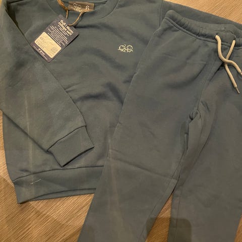 Pent brukt! Fremstår som nye! Ingen slitasje eller hull! Mørkeblå vest og mørkeblå genser med brune striper. Begge i størrelse 116.