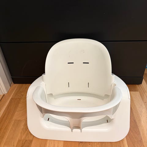 Stokke babysete med ekstra trekk. Det ekstra trekket kan brukes på begge sider. Blå/hvit.