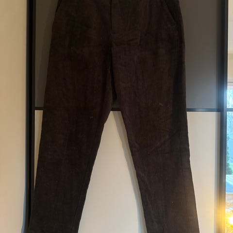 Pent og lite brukte chinos i gråblå kordfløyel fra H&M. Fargen kommer best fram på bilde #3.