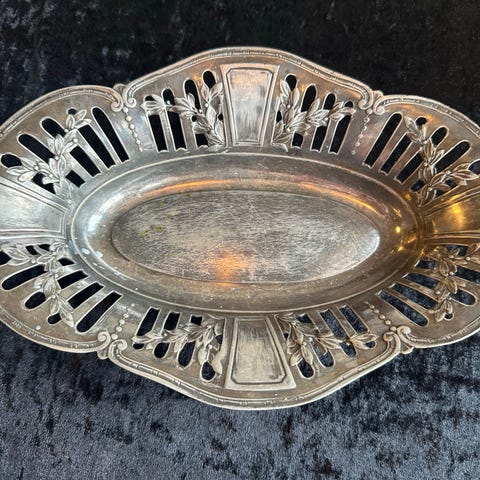 Saltkar servise sølv emalje bær blader dekor pynt borddekking høytid fest
