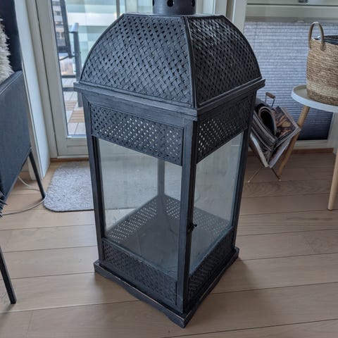 Sort lyslykt fra kremmerhuset.
