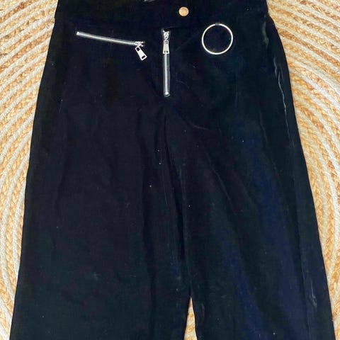 Svarte dressbukser med lommer. Rette ben.