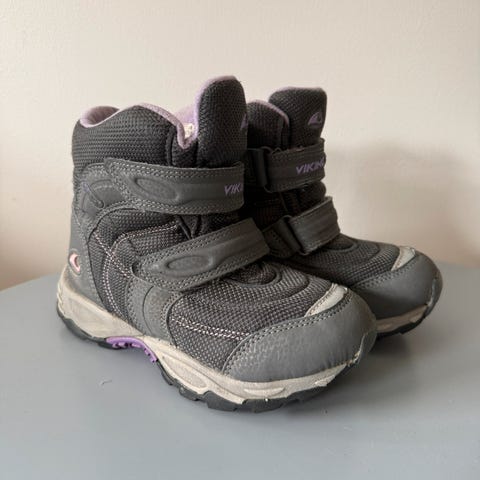 Superfit vinterskosko i størrelse 26. Skoene har svart og lilla farge med borrelås for enkel justering. Laget med slitesterke materialer egnet for aktiv bruk. Godt brukt, men perfekt som et ekstra par til vinteren❄️