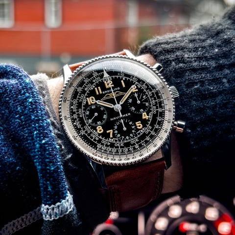 Klokken er komplett og det følger med boks, kvitteringer, breitlingtag, sertifikasjonskort, ekstra ledd og helt ny orginal gummireim.