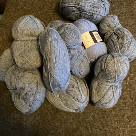 2135 gr av rester i samme blåfarger .Nøster i forskjellige vekt. Kjøpt sånn .derav billig.