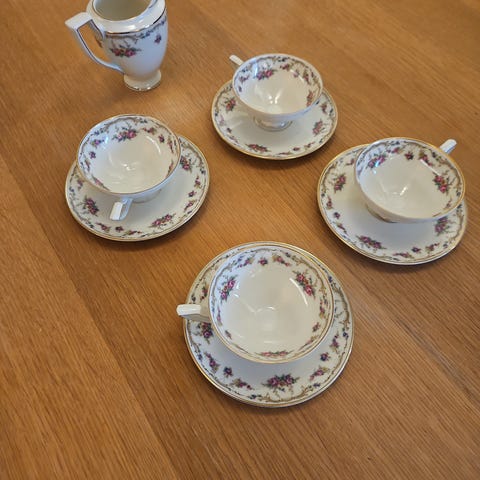 Kafferkopp, skålen, og tallerken, sett for 100 kr.