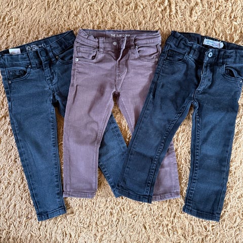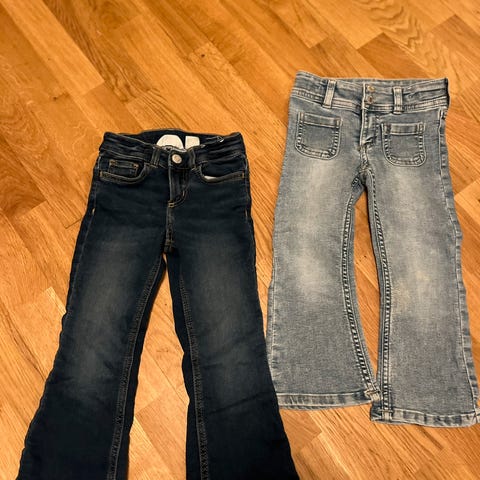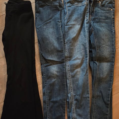Produktet inkluderer to par jeans i blå og svart farge. Materialet er denim.