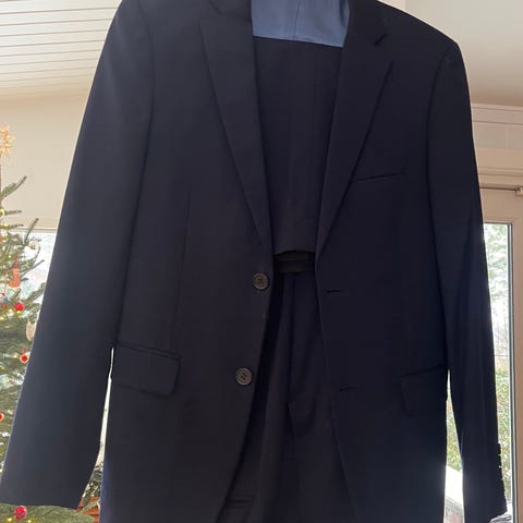 Dressmann Blå Dressjakke for herre i størrelse 44. Jakken er laget i et materiale som gir en jevn og fin finish, egnet for formelle anledninger eller kontorbruk.
