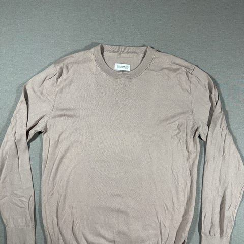 Genseren har rund hals og er designet for menn.