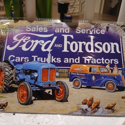 Selger 2 stk Ford klistremerker i aluminium. 120 mm lange og 35 mm høye.