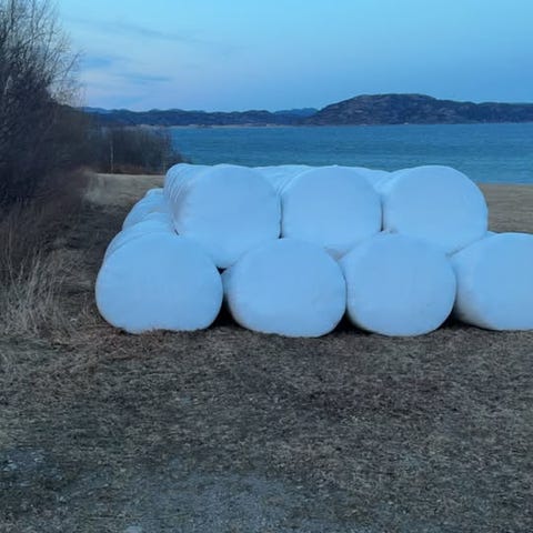 Selger rundballepakker.