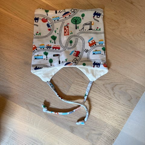Hjemmesydd lue str 4-12mnd(42-46cm i hodeomkrets).