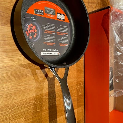 Svært pent og lite brukt grillstekepanne fra Le Creuset, selges til halv pris av ny.