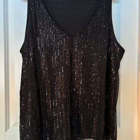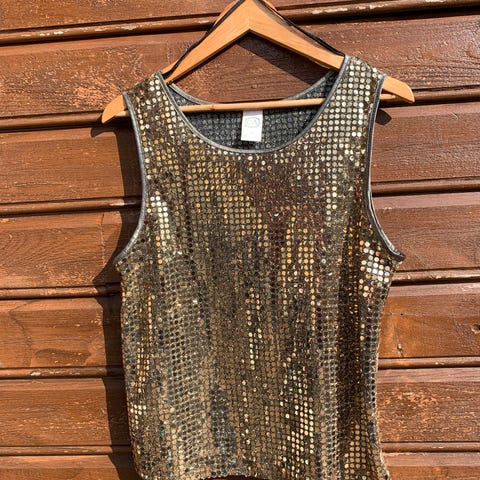 Svart og gullfarget stoff med skimrende detaljer – perfekt til fest eller en kveld ute!