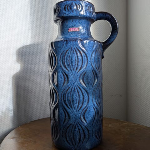 Stor blå retro Scheurich keramikk gulvkrukke West Germany 429-45.