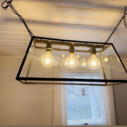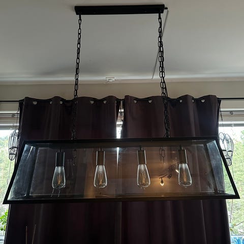 Taklampe, er en rustikk lampe med industrielt design, som passer utmerket til både hytte og hjem. Taklampen gir et lunt stemningslys, og egner seg godt over avlange bord.