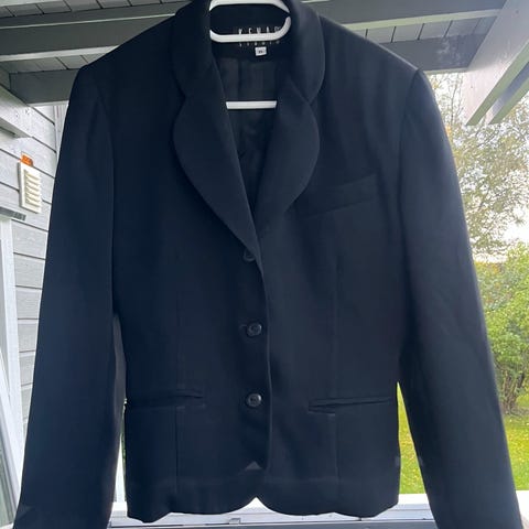 Drakten er sydd på Røros, men dessverre blitt for liten. Skjørtet har langt glidelås foran som kan reguleres om du vil ha kort eller lang splitt. Drakten er sydd i stødig linstoff. Jakken er litt «volang» bak og er foret med beige linstoff