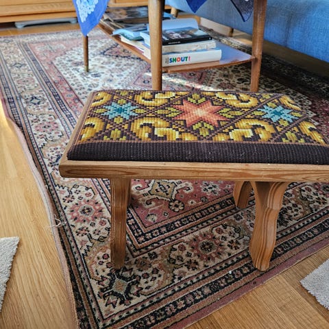Brodert med ullgarn i plattsøm.