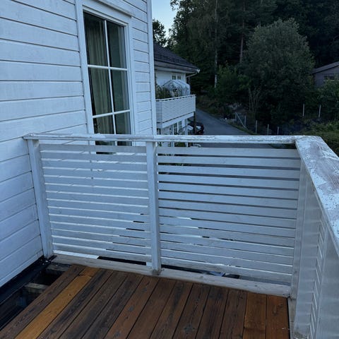 Fulgte med en trapp jeg hentet, men rekkverket ble aldri brukt.