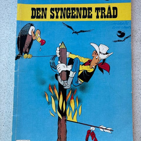 Semic Lucky Luke tegneseriehefter med titlene 'Dalton City', 'Den syngende tråd' og 'Brødrene Dalton rømmer igjen'. Heftene inneholder illustrerte historier med karakterene Lucky Luke og Dalton-brødrene, utgitt på norsk.