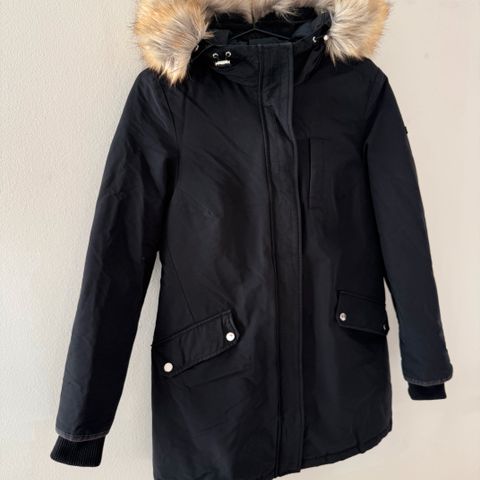 Pent brukt dunjakke fra Tommy Hilfiger. Jakken er en halvlang modell. Jakken har noen små flekker se bilde 2, det har ingenting å si for bruken. Jakken er i god stand uten andre flekker og hull. God kvalitet og varm