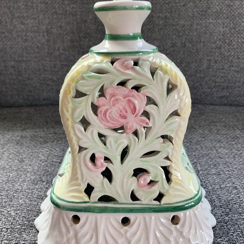 Fin (litt retro) lampe til salgs. Litt usikker på om den er laget av glass eller porselen.