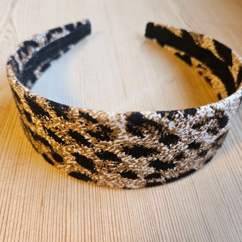 Leopardmønstret medium smalt hårbånd i brun, beige, og svart.