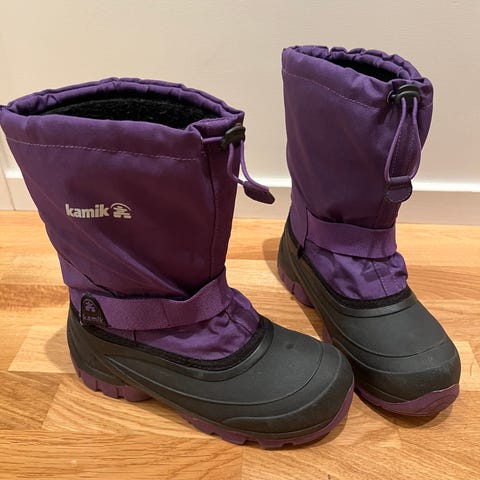 Kamik vinterstøvler for jenter i størrelse 28. Støvlene har en rosa og svart fargekombinasjon, med vanntett materiale og isolert design for å holde føttene varme og tørre i kaldt vær. Egnet for utendørs bruk i vinterforhold. Goretex. Har ein innerdel som enkelt kan tas ved behov. Gode og varme