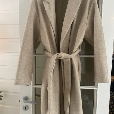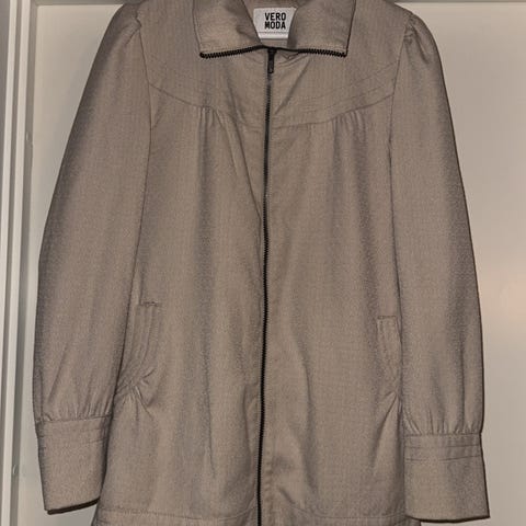 Vero Moda kåpe i beige farge, størrelse M for kvinner. Yttertøyet har belte i midjen og en klassisk krage. Materialet gir et mykt og behagelig uttrykk. Noe nupper, ellers fin stand.