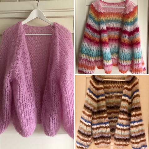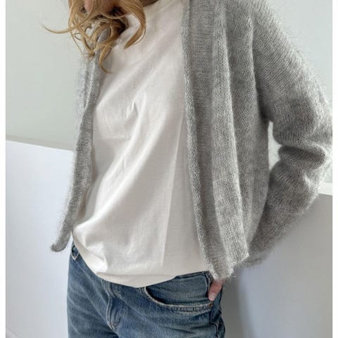 Den er strikket i Pickles sommerull (55% merino lammeull og 45% økologisk bomull) og Sandnes silk mohair.
