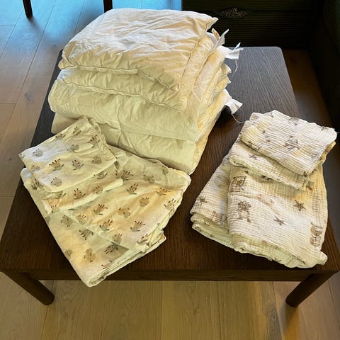 Renset ute i snøen i vinter, men bør nok få en vask også. Følger med ett dynetrekk til hver dyne fra Kid