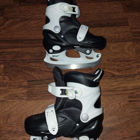 Pent brukte justerbare skøyter i størrelse 33-36. Brukt I en sesong. Kjøpt nye hos Anton sport. Nypris 750,-
