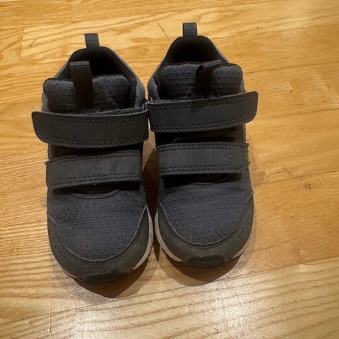 Viking overgangssko i størrelse 26. Skoene er svart/grå med borrelåsfester og har en slitesterk såle med godt grep. Egnet for daglig bruk og utendørsaktiviteter.