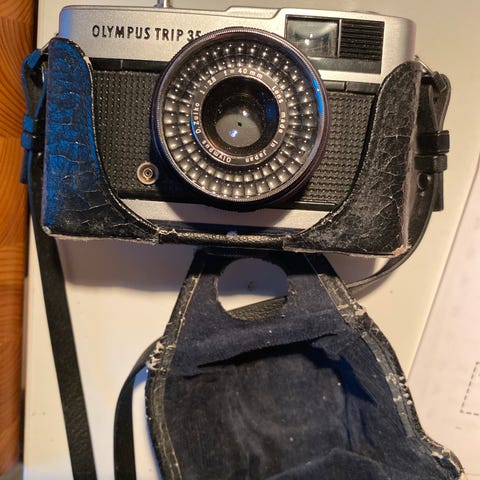 Selger en Olympus Trip 35 i nær perfekt stand. Kameraet er helt rent, uten riper, bulker eller merker – og fungerer feilfritt. Et ikonisk 35 mm reisekamera kjent for sin skarpe Zuiko-linse og pålitelig, batterifri eksponeringsmåling.