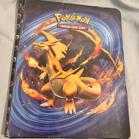 Selge denne boke men pokemon kort en fin samling. 10 kr vert kort