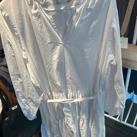 Mango skjortekjole i hvit farge, størrelse M for kvinner. Laget i et lett og pustende materiale, med knapper foran og lang erme. Passer til hverdagsbruk og formelle anledninger.passer str 36-40