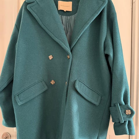 Fin kåpe i en nydelig petrol blåfarge. Kjøpt på Byoung. Jeg har alt for mange jakker og lappen er fortsatt på. Den fortjener en ny eier og komme i bruk. Nypris 1599