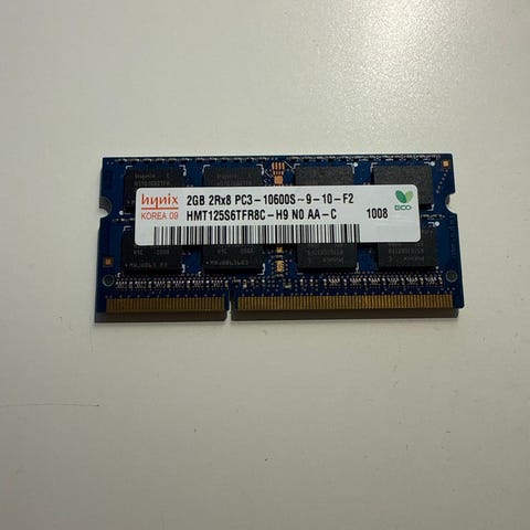 Samsung M471B5273DH0-CH9 RAM-modul med 2GB kapasitet, 1Rx8 konfigurasjon, og PC3-12800S spesifikasjon. Modulen er designet for bærbare datamaskiner og har standard SODIMM-formfaktor.