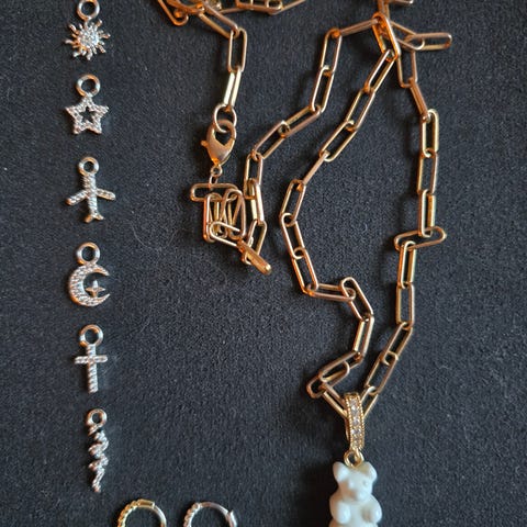 Emilia by bon dep halskjede laget av gullbelagt materiale. halskjedet gir et enkelt og elegant utseende. Fått i gave, men ble dessverre ikke brukt.
