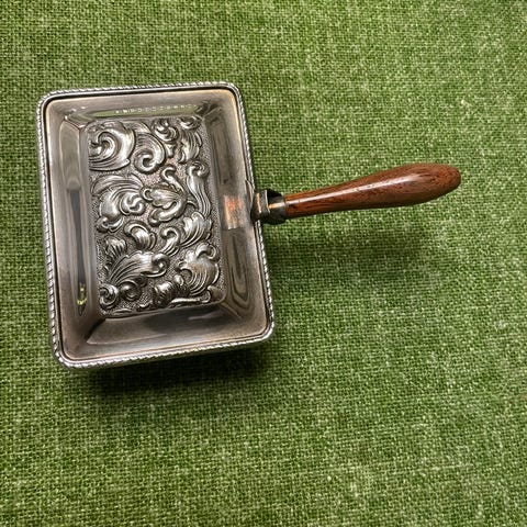 Vintage sigareteske med eikefor, innvendige mål på 14 x 7,2 cm og en vekt på 340 g.