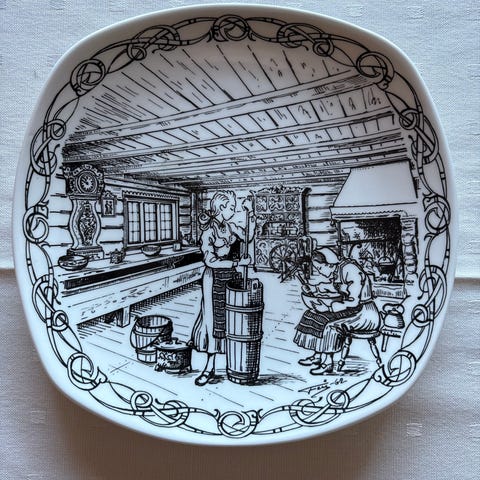 Motiv: Husmor og tradisjonelt norsk seterliv (illustrert av Finne?)