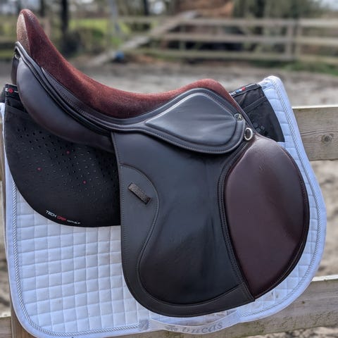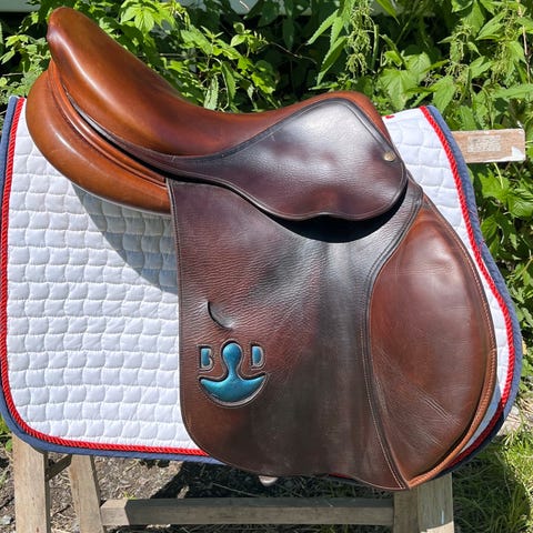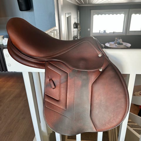 Selger en nydelig Bruno Delgrange sprangsal, håndlaget i Frankrike. Salen er nesten ikke brukt. Den ble kjøpt til en tidligere hest som dessverre måtte få slippe, og passer ikke optimalt til den nye.
