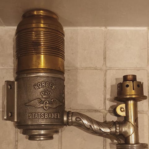 Sjelden: Parafinlampe m/2 lampeglass, fra Hovedbanen, åpnet 1854.