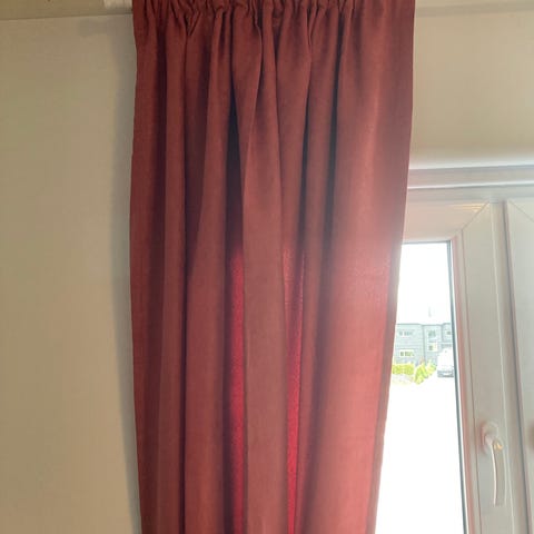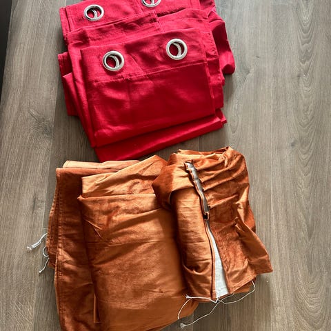 Selger pent brukte rustrøde/orange gardiner fra Rusta, da vi ønsker andre farger. 6 lengder. 50kr per lengde