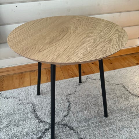 IKEA BJÄLLSTA sidebord rundt svart med trefarget bordplate