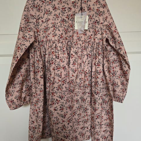 Julekjole fra MarMar fra et par sesonger siden. Str 4 år (104), men denne passer både for 3 - 4 åringer. Nydelig på med «puff» effekt i skjørtet. Gulldetaljer i kjolen gjør at den er nydelig med en gullstrømpebukse til. Kjolen er brukt 2 ganger og ikke brukt ved matservering noen av gangene så denne har ingen flekker eller anmerkninger.